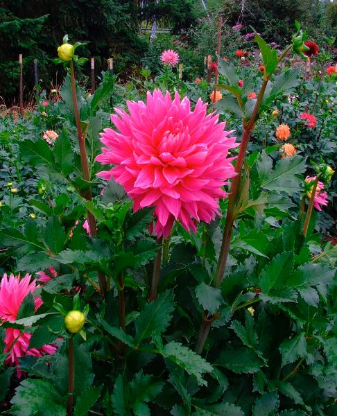 | Big Pink was introduced in 2009. It is a full sized giant flower in a very bright shade of pink. Margaret has used it very successfully in winning flower arrangements. It has won blue ribbons at shows and has been “King of the Show”. 4 feet tall. |