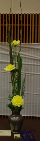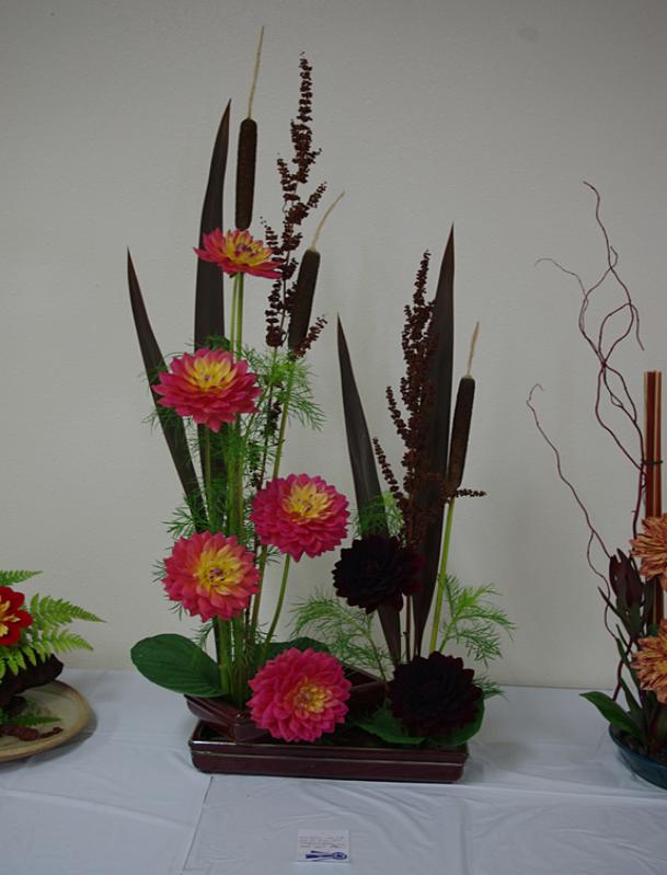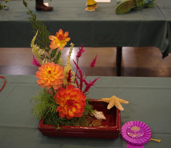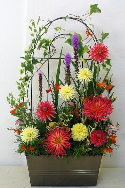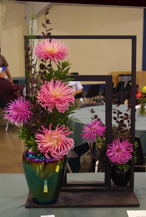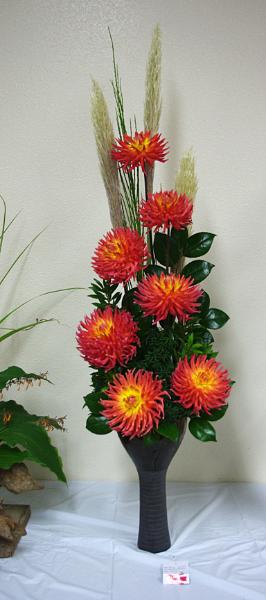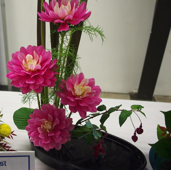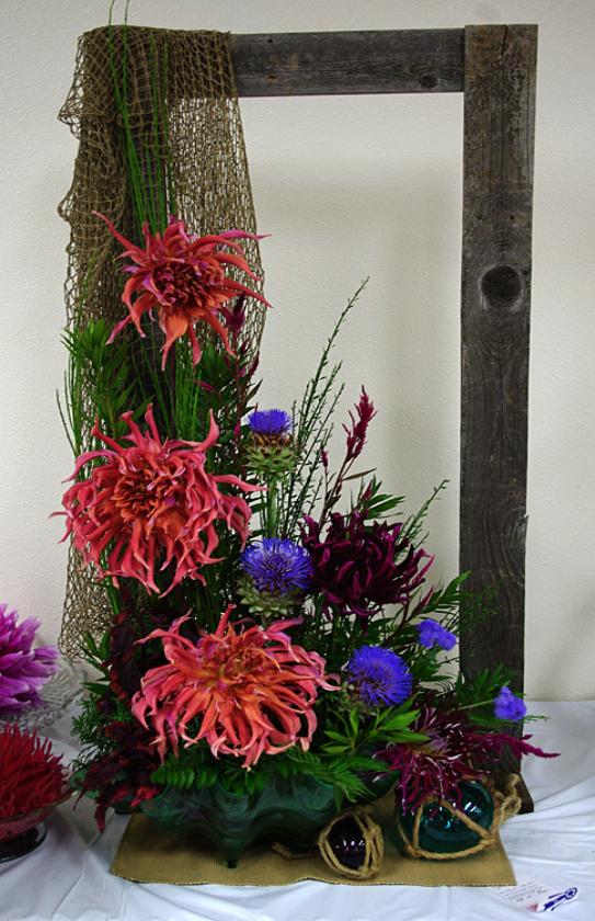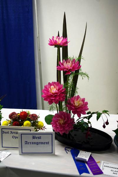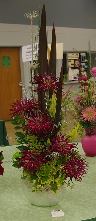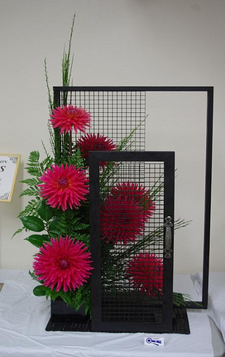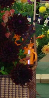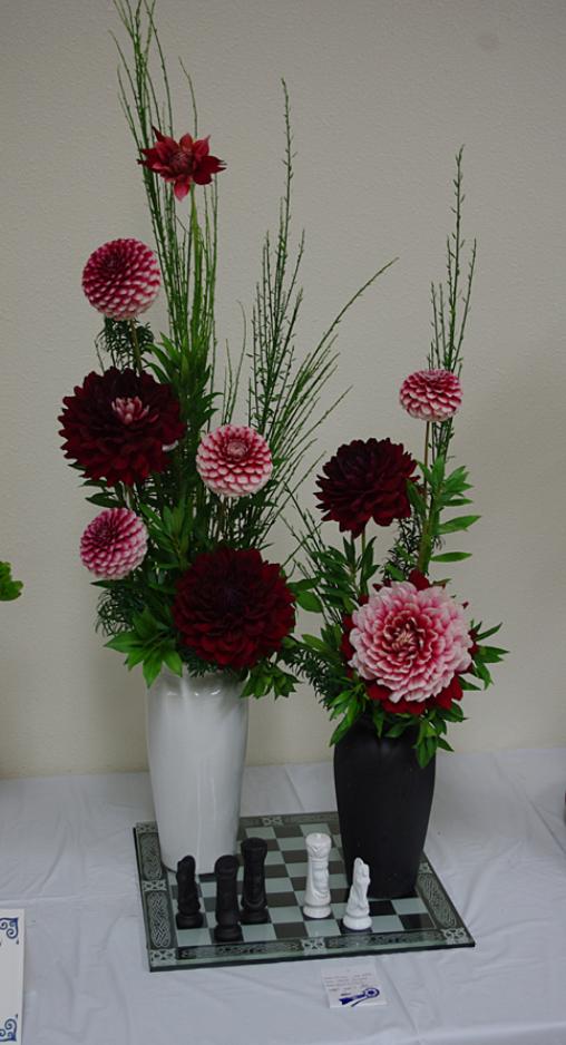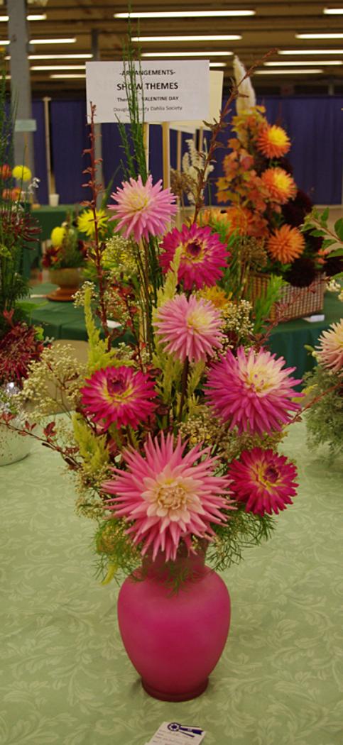 Margaret attended four dahlia shows this year. She tries to use our Hollyhill flowers and seedlings as much as possible in her designs. The designs that were entered in the American Dahlia Society National show are on a another web page, click here for that page.