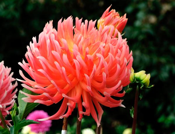 New for 2013. Augustina won the Derrill Hart medal for the highest scoring "B" sized flower in the trial gardens. It is a seedling of our medal winning Hollyhill Cotton Candy, hand crossed with another incurved cactus flower. It won best "B" sized triple entry in a show this year. 4 feet tall |
